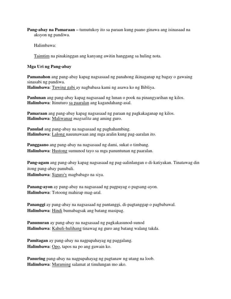 Ano Ang Pang-abay Mga Halimbawa Nito.