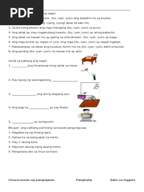 Nagsasalita kinakausap bagay 11. You may print and photocopy them for your students or children but please do not redistribute them for profit. Iyon ang bahay namin.