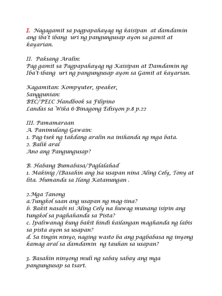 Filipino 6 Pangungusap Ayon Sa Gamit